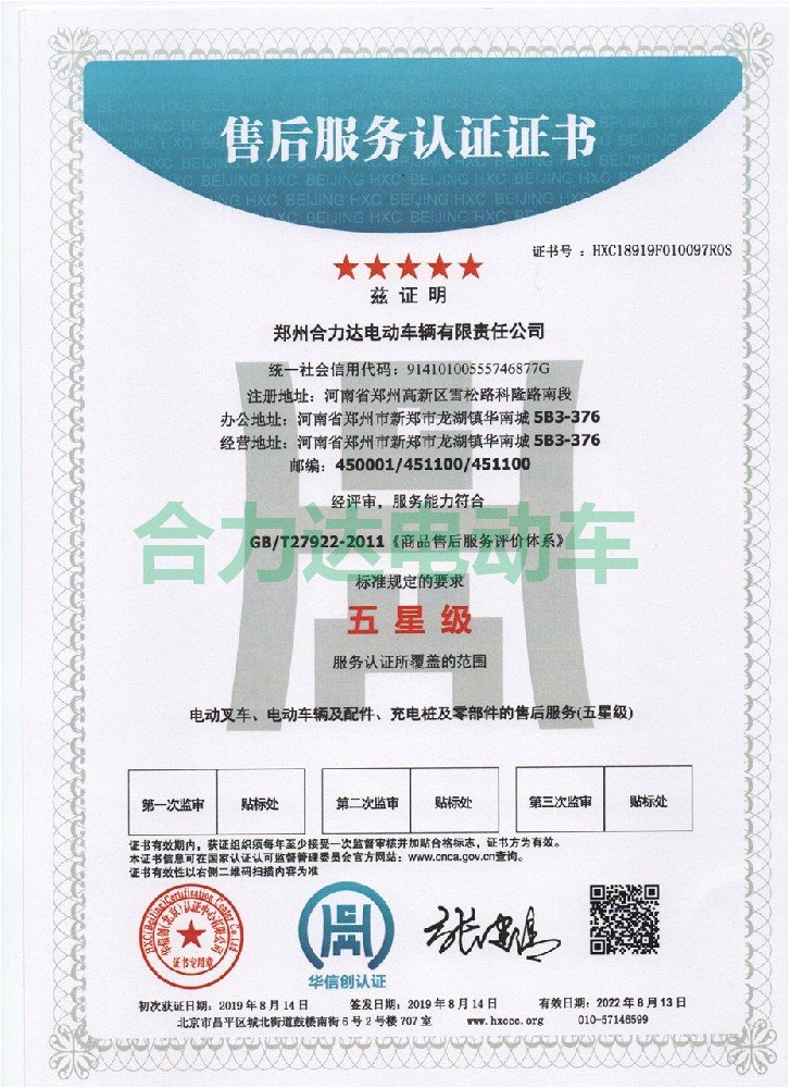 公司已通過(guò)國(guó)家相關(guān)部門頒發(fā)的多種體系認(rèn)證證書,搬運(yùn)車和蓄電池觀光車取得國(guó)家特種設(shè)備制造許可證,2011年公司被河南省發(fā)改委、科學(xué)技術(shù)廳、科學(xué)院、農(nóng)科院共同頒發(fā)“河南省**科技型企業(yè)” 。